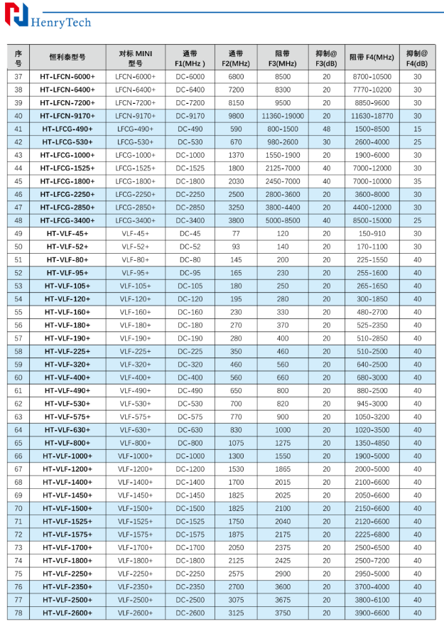 熱門產(chǎn)品推薦:HT-LFCN-800+(對標mini的LFCN-800+)、HT-LFCN-490+(對標LFCN-490+)、HT-LFCN-400+(對標LFCN-400+)、HT-LFCN-2500+(對標LFCN-2500+)、HT-LFCN-2250+(對標LFCN-2250+)、HT-LFCN-160+(對標LFCN-160+)、HT-LFCN-1000+(對標LFCN-1000+)、HT-LFCN-1800+(對標LFCN-1800+)、HT-LFCN-6000+(對標LFCN-6000+)、HT-LFCN-80+(對標LFCN-80+)