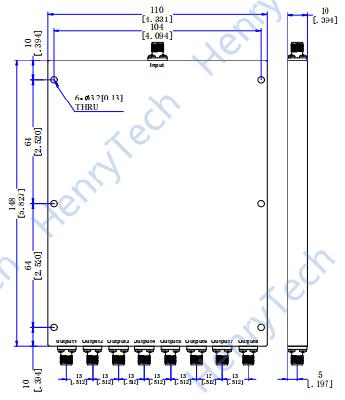 8路功分器(20W)/合路器(1W) 頻率:500-9000MHZ SMA母頭接口 |