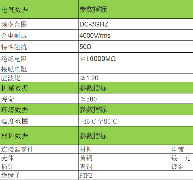 替代型號(hào):L29公頭轉(zhuǎn)4310母頭射頻轉(zhuǎn)接器 DC-3GHz 阻抗:50Ω